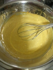 インド料理のために熱い油をパンの上にかける